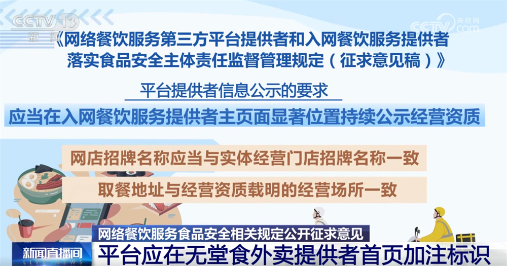 中国人平易近大学食物平安管理协同立异核心、公共办理学院传授刘鹏称:“对收集餐饮办事第三方从体供给者和入网餐饮办事供给者,正在落实食物平安从体义务上的这种总体的定位、脚色、功能和根基准绳进行了系统清晰的界定。可以或许便于后续无效落实。该当正在入网餐饮办事供给者从页面显著持续公示运营天分,网店招牌名称该当取实体运营门店招牌名称分歧,取餐地址取运营天分载明的运营场合分歧。对于无堂食外卖供给者,平台该当正在网店首页加注“无堂食”标识。