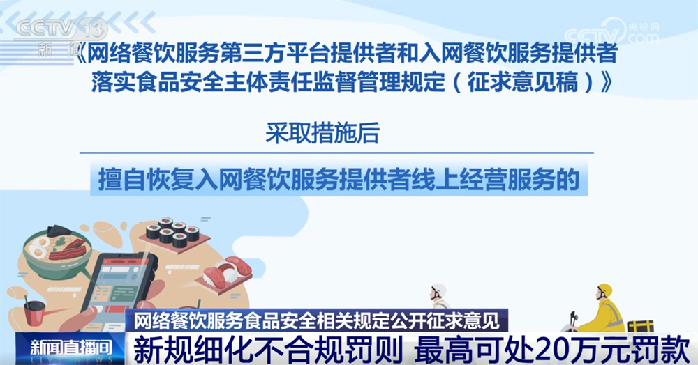 刘鹏称:“我们经常讲的一张证开多个餐饮店,最初正在识此外过程傍边、监管的过程傍边带来一些不确定性和一些消息失实的环境。入网餐饮办事供给者不得利用统一运营天分正在统一平台开设多家网店。平台供给者对入网餐饮办事供给者利用统一运营天分反复申请入网的行为该当予以。收罗看法稿明白了各方式律义务,细化了平台取商家呈现不合规行为的罚则,同时明白了异地管辖权问题。按照收罗看法稿,平台收到市场监视办理部分关于入网餐饮办事供给者违法违规行为消息等传递未采纳响应办法的;采纳办法后私行恢复入网餐饮办事供给者线上运营办事的;以及未将入网餐饮办事供给者运营天分取省级市场监视办理部分从体天分消息进行校验比对等行为将面对五万元以上二十万元以下罚款。