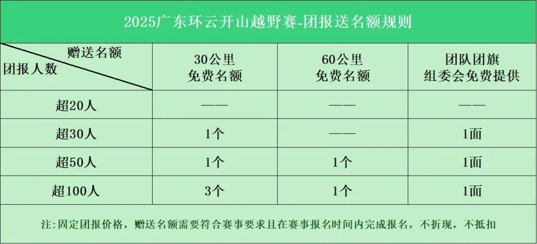 1、 团报不限组别(如:某跑团,团报30人,此中20个30公里、10个60公里,合适团报赠送名额要求,可获得30公里免费名额1个)。