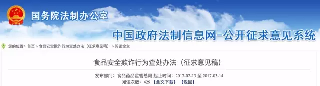 第一条【立法目标】为峻厉查处食物平安欺诈行为,食物平安,保障身体健康和生命平安,按照《中华人平易近国食物平安法》等法令律例,制定本法子。第二条【合用范畴】县级以上食物药品监视办理部分根据职责分工查处食物平安欺诈行为,合用本法子。第【概念界定】本法子所称食物平安欺诈是指行为人正在食物出产、储存、运输、发卖、餐饮办事等勾当中居心供给虚假环境,或者居心坦白实正在环境的行为。第四条【根基准绳】县级以上食物药品监视办理部分查处食物平安欺诈行为,该当遵照严酷、及时、公开、的准绳。出产运营场合,照实供给相关材料、数据和消息。(一)正在产物研发、进货检验、出厂查验、储存运输、不及格食物处置、食物平安变乱措置等勾当中坦白实正在环境或者进行虚假记实;(三)正在出产运营勾当中伪制、变制或者利用伪制、变制的出产运营许可证书、产物注册证书、存案凭证、查验检疫及格证明、产地证明、购货凭证等文件;(二)虚假标注企业名称、产物注册证号、出产许可证号、加工工艺、产地、出产地址、联系体例等消息;第十条【食物宣传欺诈】以收集、德律风、电视、、、会议等体例宣传食物,有下列景象之一的,属于食物宣传欺诈:(一)食物的机能、功能、产地、规格、成分、出产者、尺度、保质期、查验演讲等消息取现实环境不符;(三)通俗食物、暗示具有功能或者特殊医学用处的,或者利用“可医治”、“可治愈”等医疗术语;(一)食物查验机构查验数据,私行改换样品,伪制试验记实、查验数据和查验成果,出具虚假查验结论等;(二)食物认证机构违反认证法式坦白实正在环境、审核记实、伪制认证文书或者出具虚假认证结论等。(一)申请保健食物、特殊医学用处配方食物、婴长儿配方乳粉产物配方注册时,供给虚假消息、数据、材料和样品;(一)保健食物进行存案时,供给虚假研告、产物配方、出产工艺、平安性和保健功能评价材料、查验演讲等材料;(四)食物储存办事供给者向监管部分演讲虚化名称、地址、代表人或者担任人姓名,以及储存食物的所有人、联系体例等消息;(五)集中买卖市场创办者演讲虚假市场名称、居处、类型、代表人或者担任人姓名、食物平安办理轨制、食用农产物次要品种、摊位数量等消息。第十六条【提交虚假监管消息】食物出产运营者正在食物药品监管部分进行监视查抄、抽样查验、案件查询拜访、变乱措置时,坦白实正在环境,或者提交虚假的天分证明、进货检验记实、食物出产运营记实、出厂查验记实、食物查验及格结论、扣问消息等,属于向监管部分提交虚假消息。第十七条【产物欺诈法令义务】 违反本法子第七条第(一)、(二)、(三)、(四)项,由县级以上食物药品监视办理部分按照《食物平安法》第一百二十第一款的赐与惩罚,并对其代表人、次要担任人、间接担任的从管人员和其他间接义务人员处1万元以上3万元以下罚款。违反本法子第七条第(五)项,由县级以上食物药品监视办理部分按照《食物平安法》第一百二十四条第一款的赐与惩罚,并对其代表人、次要担任人、间接担任的从管人员和其他间接义务人员处1万元以上3万元以下罚款。第十八条【食物出产运营行为欺诈法令义务】违反本法子第八条,由县级以上食物药品监视办理部分赐与,并处1万元以上3万元以下罚款,并对其代表人、次要担任人、间接担任的从管人员和其他间接义务人员处5千元以上1万元以下罚款。第十九条【标签仿单欺诈法令义务】 违反本法子第九条第(一)、(二)、(四)、(五)、(六)项,由县级以上食物药品监视办理部分按照《食物平安法》第一百二十五条第一款的赐与惩罚,并对其代表人、次要担任人、间接担任的从管人员和其他间接义务人员处1万元以上3万元以下罚款。违反本法子第九条第(三)项,由县级以上食物药品监视办理部分按照《食物平安法》第一百二十四条第一款的赐与惩罚,并对其代表人、次要担任人、间接担任的从管人员和其他间接义务人员处1万元以上3万元以下罚款。第二十条【食物宣传欺诈法令义务】 违反本法子第十条第(一)至(六)项,由县级以上食物药品监视办理部分赐与,并处1万元以上3万元以下罚款,并对其代表人、次要担任人、间接担任的从管人员和其他间接义务人员处5千元以上1万元以下罚款。违反本法子第十条第(七)项,由县级以上食物药品监视办理部分按照《食物平安法》第一百二十五条第一款的赐与惩罚,并对其代表人、次要担任人、间接担任的从管人员和其他间接义务人员处1万元以上3万元以下罚款。对食物做虚假宣传且情节严沉的,按照《食物平安法》第一百四十条第五款处置,并对其代表人、次要担任人、间接担任的从管人员和其他间接义务人员处1万元以上3万元以下罚款。食物宣传欺诈涉及相关部分职责的,由县级以上食物药品监视办理部分移交相关部分处置,并向社会通知布告。第二十一条【消息欺诈法令义务】 违反本法子第十一条,单元和小我、、虚假食物平安消息,形成违反治安办理行为的,该当移交机关依法处置。或者从业人员存正在虚假旧事欺诈行为的,由县级以上食物药品监视办理部分移送相关部分依法处置,并向社会通知布告。第二十二条【食物查验、认证欺诈法令义务】 违反本法子第十二条第(一)项,按照《